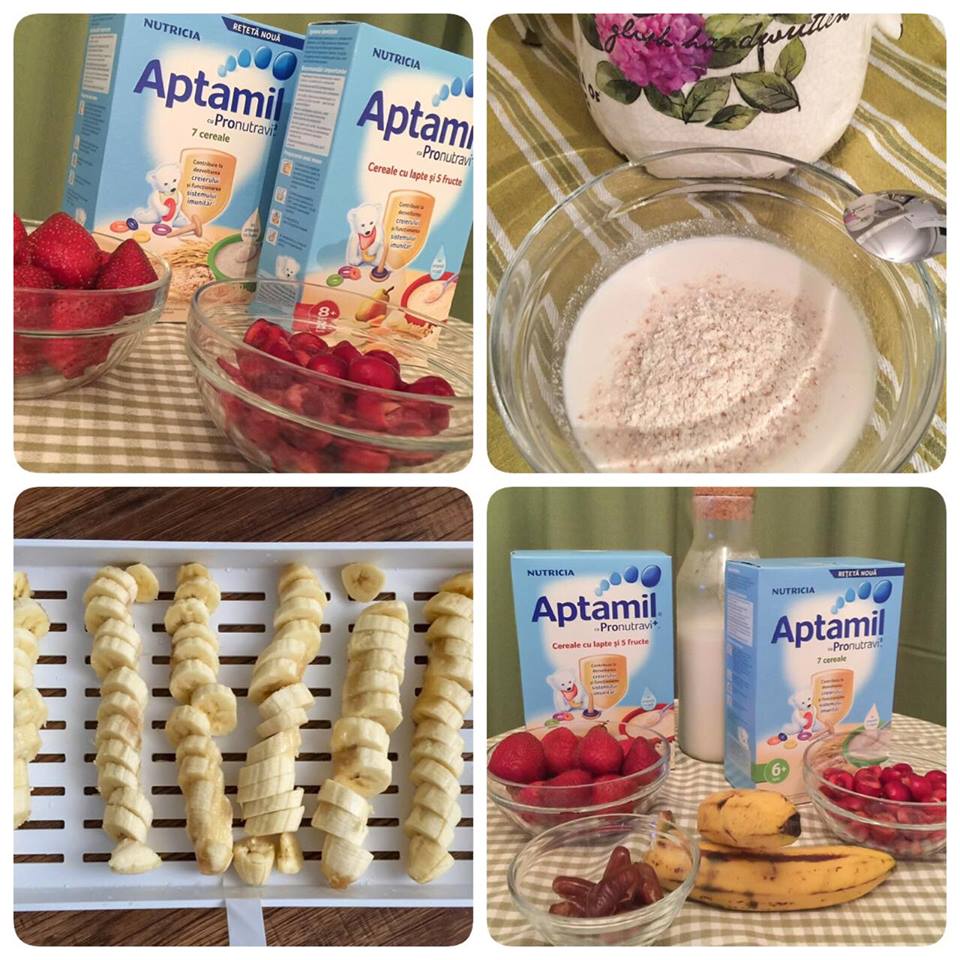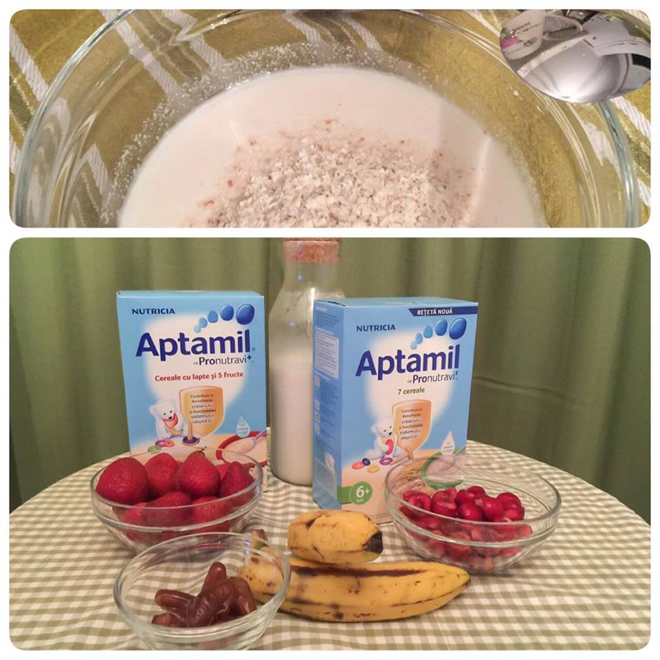 Când a venit propunerea Nutricia, am simțit o ușoară emoție. Era în sufletul meu bucurie, entuziasm. Doar aveam să prepar o rețetă sănătoasă cu cerealele Aptamil, cu experiența unei mame care a bifat diversificarea. Dar mai încolțea ceva. N-am știut de unde vine acel ceva, inițial. L-am pus pe seama faptului că eu nu am mai făcut o rețetă pentru un bebeluș de 5 ani și. Dar nu, era vorba despre emoția care îmbrăca starea mea din perioada diversificării, a unei mame începătoare, aflată permanent în criză de timp, alergată mai ceva ca la maraton, pusă pe hrănit copilul după carte, cu multe întrebări și puține răspunsuri, care a reușit să transforme masa copilului într-un stres. Mi-am dat seama abia în timp ce preparam rețeta pe care am să ți-o împărtășesc și ție. Acum, am fost atât de relaxată! Așa să fii și tu.