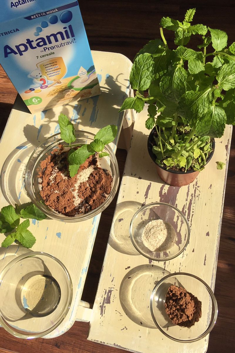 Am ales pentru rețeta noastră, din cele 5 sortimente de cereale Aptamil, varianta 7 Cereale cu Pronutravi2, recomandată bebelușilor după vârsta de 6 luni. Apropo, știai că cerealele Aptamil nu au zahar adaugat, ci doar zaharuri prezente in mod natural in cereale?  Și sunt bogate în Fier, Iod, vitamina C și vitamina D, elemente ce contribuie la funcționarea normală a sistemului imunitar și la dezvoltarea armonioasă a creierului bebelușului, alături de dragostea ta necondiționată.