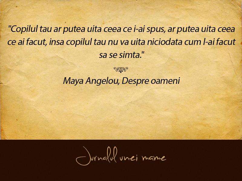 "Copilul tau ar putea uita ceea ce i-ai spus, ar putea uita ceea ce ai facut, insa copilul tau nu va uita niciodata cum l-ai facut sa se simta."