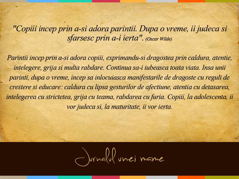 "Copiii incep prin a-si adora parintii. Dupa o vreme, ii judeca si sfarsesc prin a-i ierta."